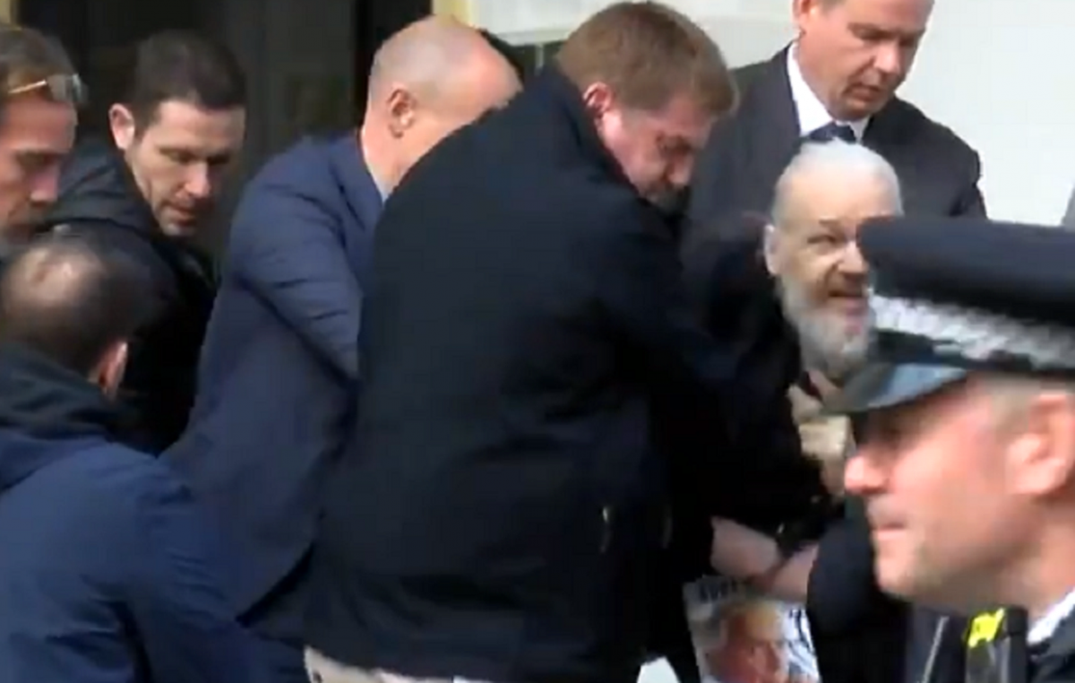 Ο Ασάνζ σε βίντεο που τράβηξε το πρακτορείο Ruptly TV εμφανίζεται γερασμένος και εξασθενισμένος, με λευκά μαλλιά και μακριά γένια. Πριν τον βάλουν μέσα στο φορτηγάκι φώναξε: «Η Βρετανία πρέπει να αντισταθεί».