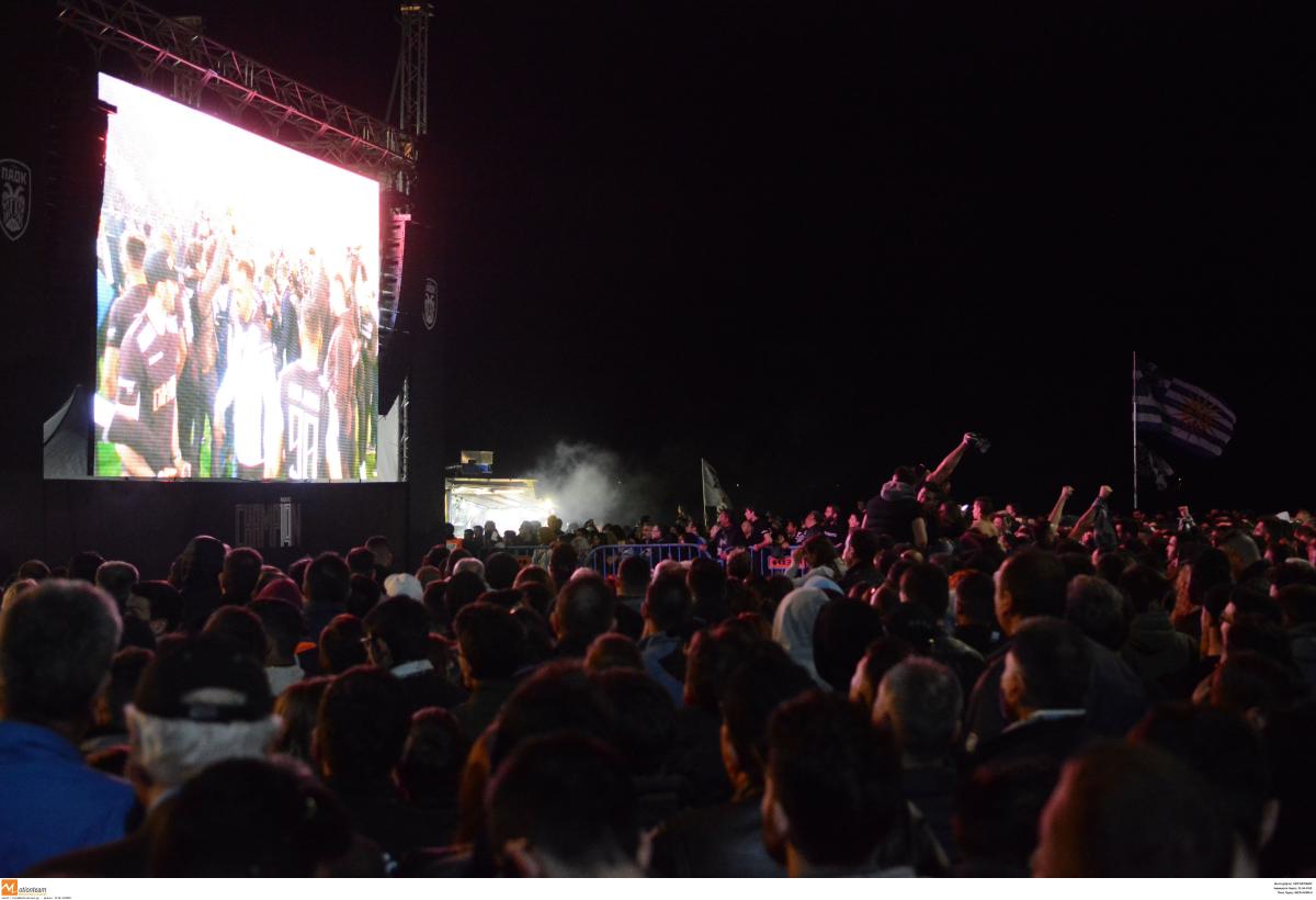 Βετεράνοι που φορούσαν μπλουζάκια που έγραφαν Champion με λογοπαίγνιο το 19, φάσεις από τις δύο σεζόν με τα… best of που οδήγησαν τον ΠΑΟΚ στις κούπες, παιδάκια με φωτεινές μπάλες, πυροτεχνήματα, πυρσοί έδωσαν τον τόνο στη φιέστα που στήθηκε.