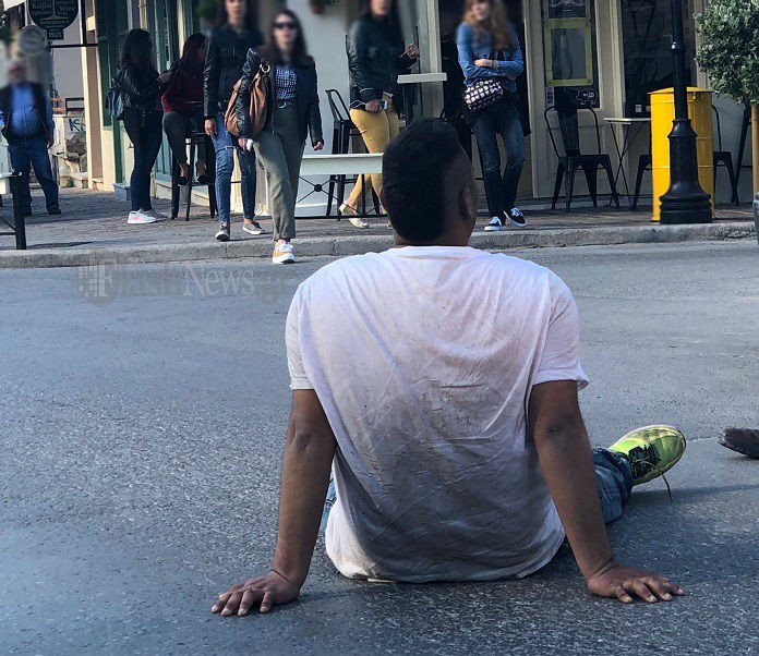 Ένα ασυνήθιστο περιστατικό σημειώθηκε στην Σπλάντζια σήμερα το απόγευμα όταν ένας νεαρός στη συμβολή των οδών Δασκαλογιάννη και Σήφακα, έξω από γνωστό ταχυφαγείο, ξάπλωσε στη μέση του δρόμου και άρχισε να φωνάζει.