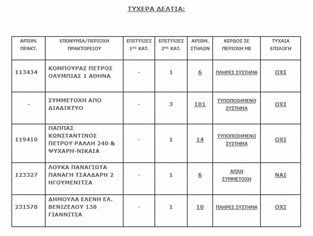 Δείτε παρακάτω το σχετικό αναλυτικό πίνακα που είναι διαθέσιμος στην ιστοσελίδα του ΟΠΑΠ: