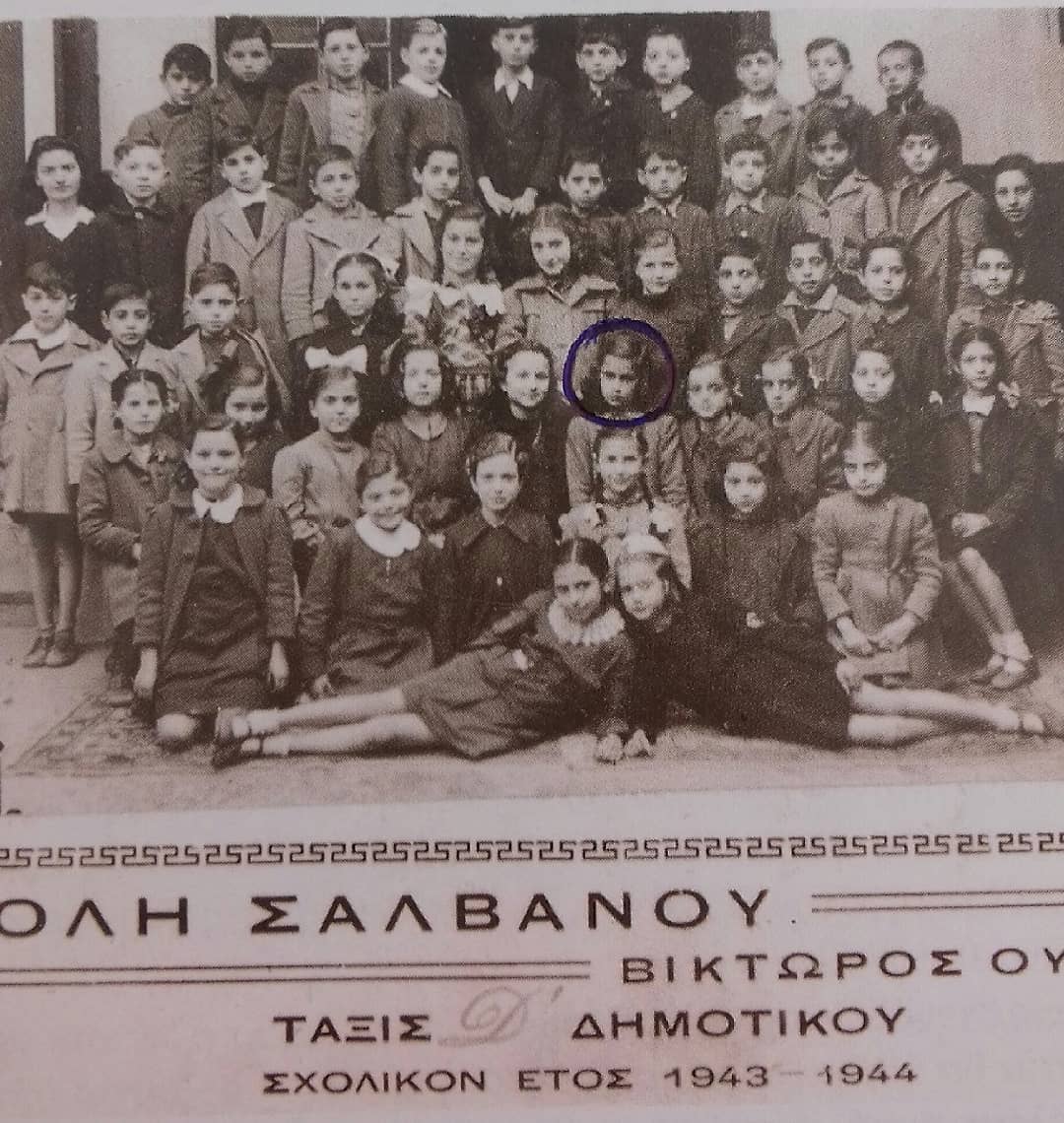 Η Αλίκη διακρίνεται μέσα στον μπλε κύκλο και είναι λίγο μετά τον πόλεμο. Πρόκειται για τη σχολική χρόνιά 1943 – 1944 όπου η Αλίκη πάει στην 4η δημοτικού!