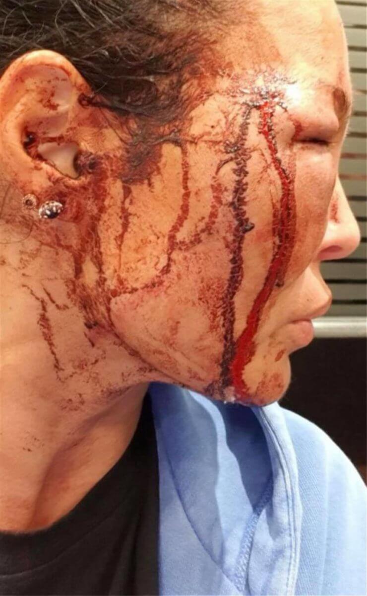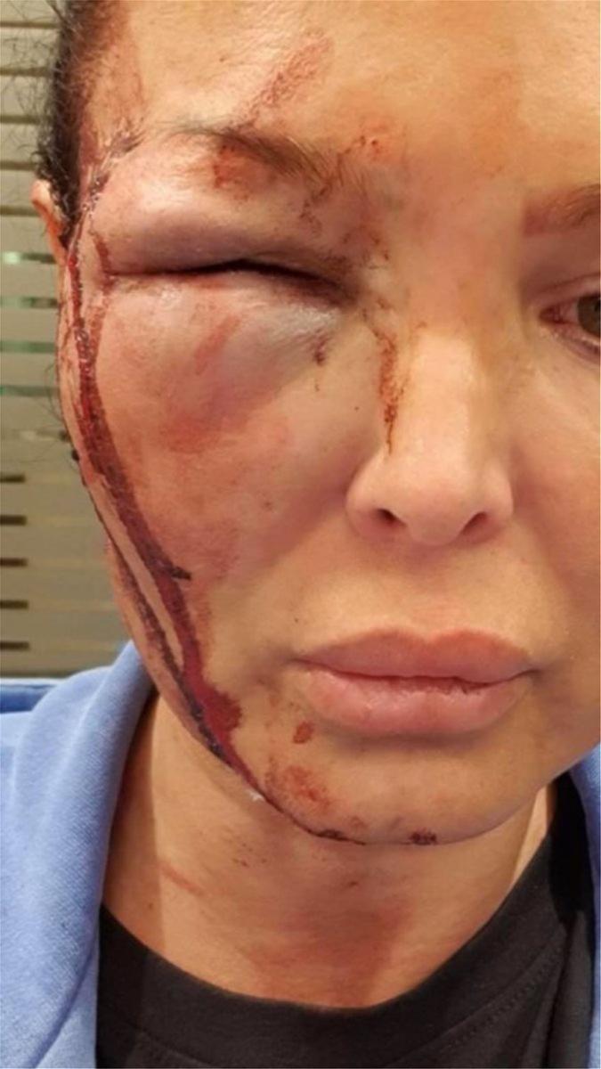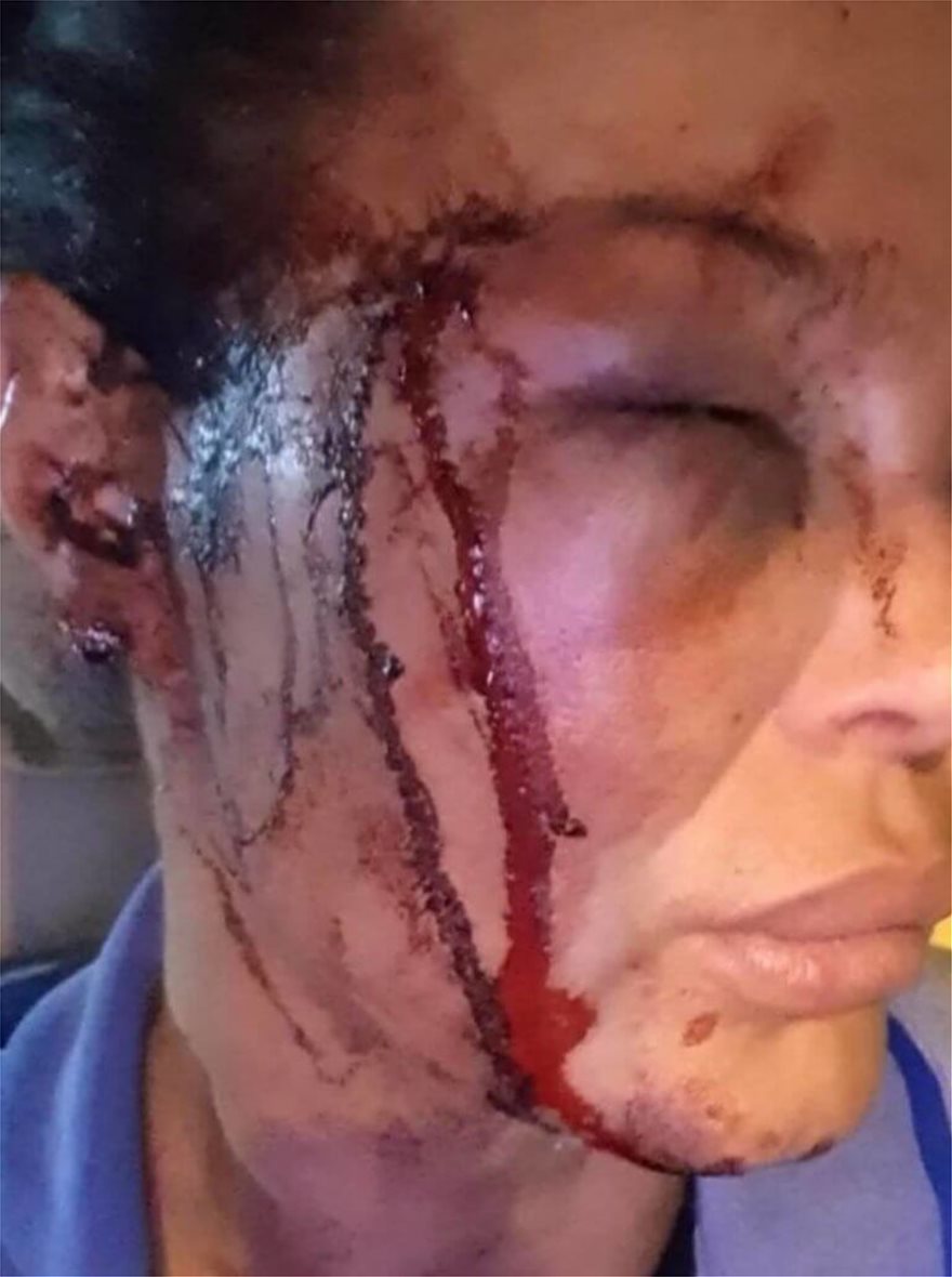 Οι αναρτήσεις στο facebook δείχνουν το πρόσωπό της πολύ χτυπημένο, το ένα της μάτι κλειστό, ενώ αίματα έχουν καλύψει τα μάγουλά της.