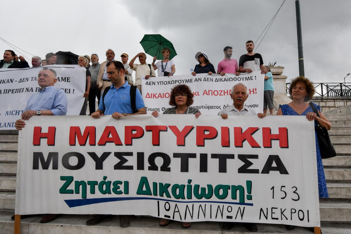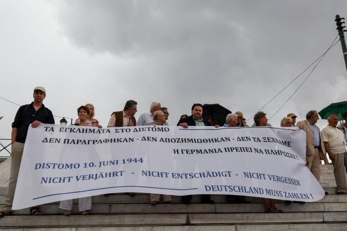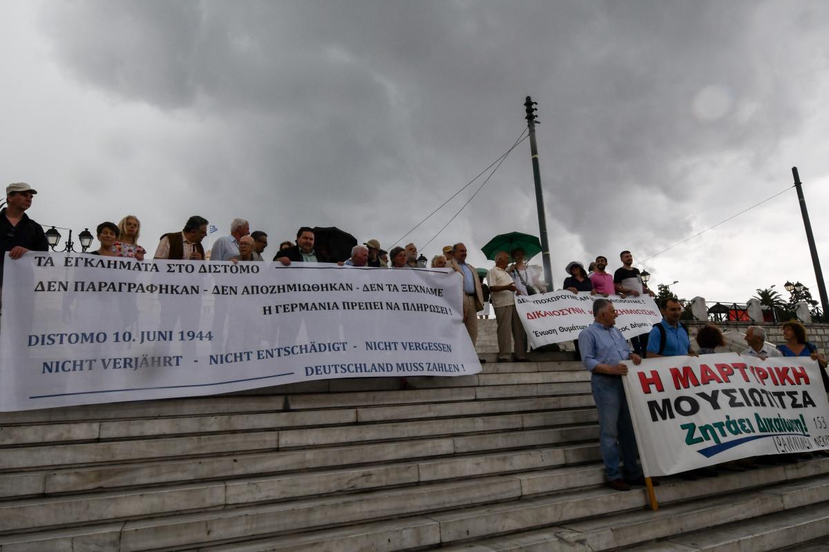 Διαμαρτυρία πραγματοποίησαν στο Σύνταγμα το Εθνικό Συμβούλιο Διεκδίκησης των Οφειλών της Γερμανίας προς την Ελλάδα και η κίνηση AK «DISTOMO» για τις πολεμικές επανορθώσεις και αποζημιώσεις.