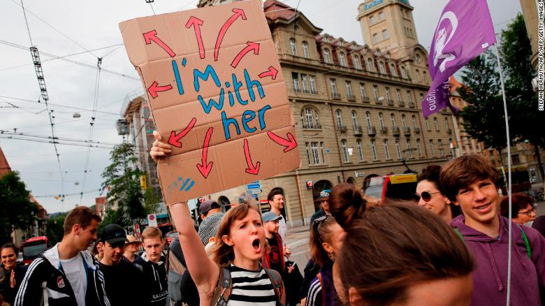 “Κάτω η πατριαρχία”, “Το σώμα μου είναι δικό μου” ή ακόμη “Ο Χάρι Πότερ θα ήταν νεκρός χωρίς την Ερμιόνη”, έγραφαν στα πλακάτ οι διαδηλώτριες.