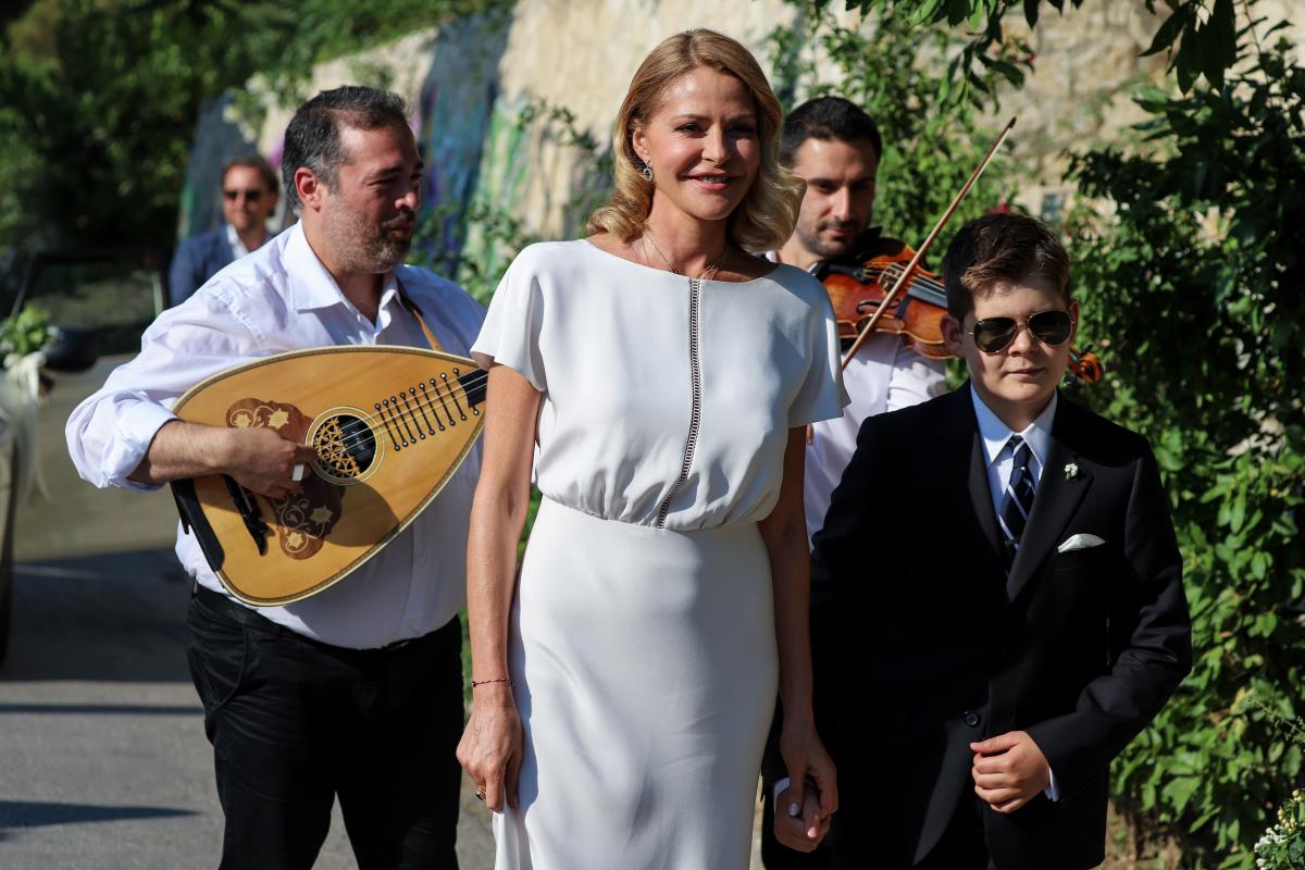 Συνοδευόμενη από τον γιο της Μάξιμο έφτασε η Τζένη Μπαλατσινού στην εκκλησία.