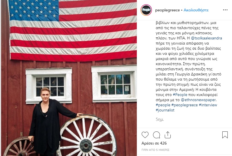 Η Αλεξάνδρα Τσόλκα πήρε τη γενναία και μεγάλη απόφαση να μαζέψει τα πράγματά της και να φύγει χιλιάδες χιλιόμετρα μακριά. Πλέον ζει μόνιμα στο Σπρίνγκφιλντ της Βοστώνης και συνεχίζει να γράφει.