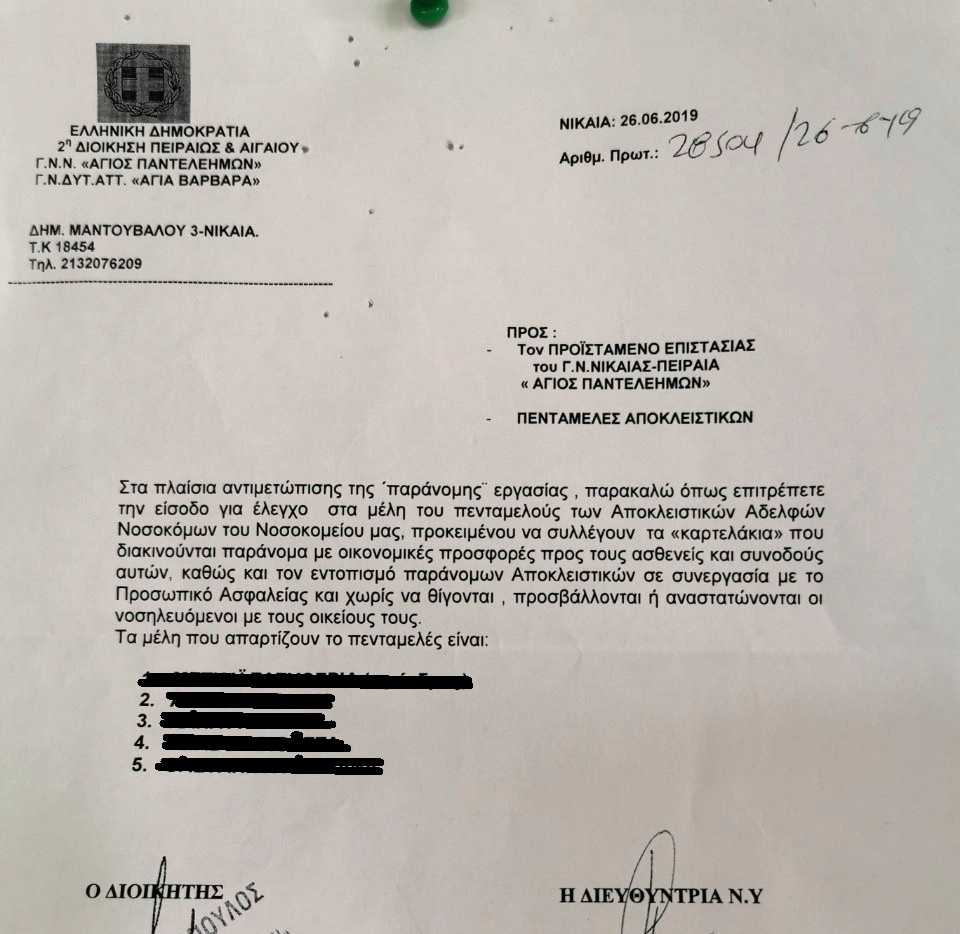 «Το φαινόμενο των παράνομων αποκλειστικών είχε καταπολεμηθεί στα πλαίσια του νόμου. Τι μεσολάβησε και βγήκε η παράνομη απόφαση του Διοικητή του Νοσοκομείου της Νίκαιας;», διερωτάται η ΠΟΕΔΗΝ.