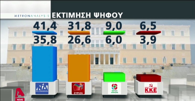 Εν τω μεταξύ, διαφορά 7,4 μονάδων υπέρ της ΝΔ έναντι του ΣΥΡΙΖΑ και εξακομματική Βουλή, καταγράφει η τελευταία δημοσκόπηση της Metron Analysis πριν από την κάλπη της Κυριακής για λογαριασμό του ALPHA.