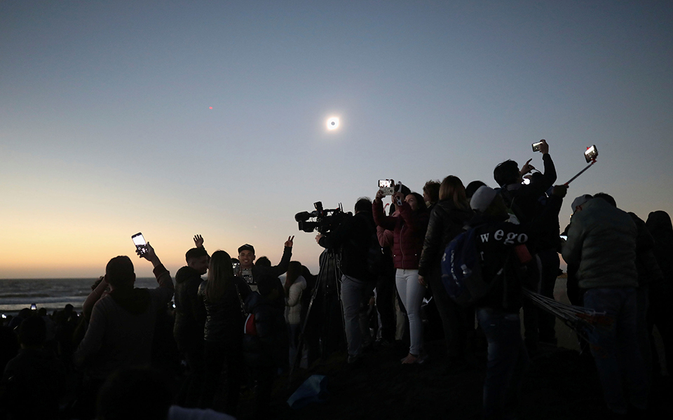 Το μαγικό φαινόμενο της ολικής έκλειψης ηλίου είχαν την ευκαιρία να παρατηρήσουν στην Nότια Αμερική χιλιάδες άνθρωποι την Τρίτη.