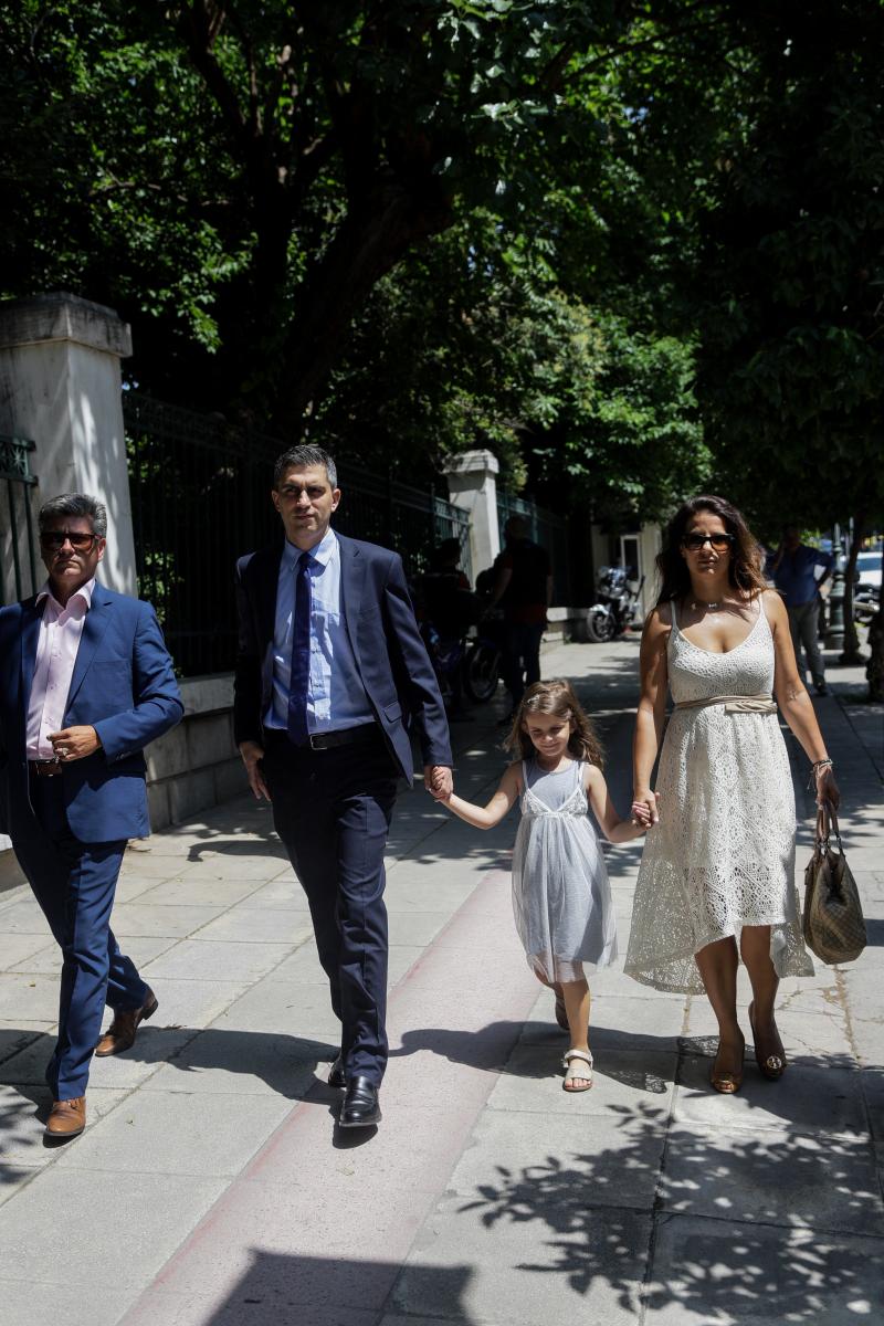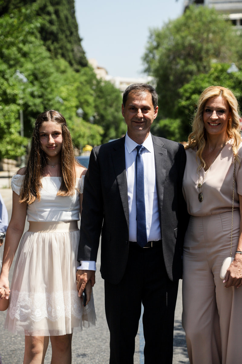 Λίγο μετά τις 11 και μισή άρχισαν να προσέρχονται τα μέλη του νέου υπουργικού συμβουλίου μαζί με μελή της οικογενείας τους για την ορκωμοσία της νέας κυβέρνησης.