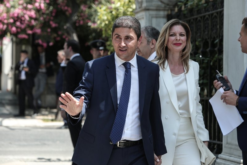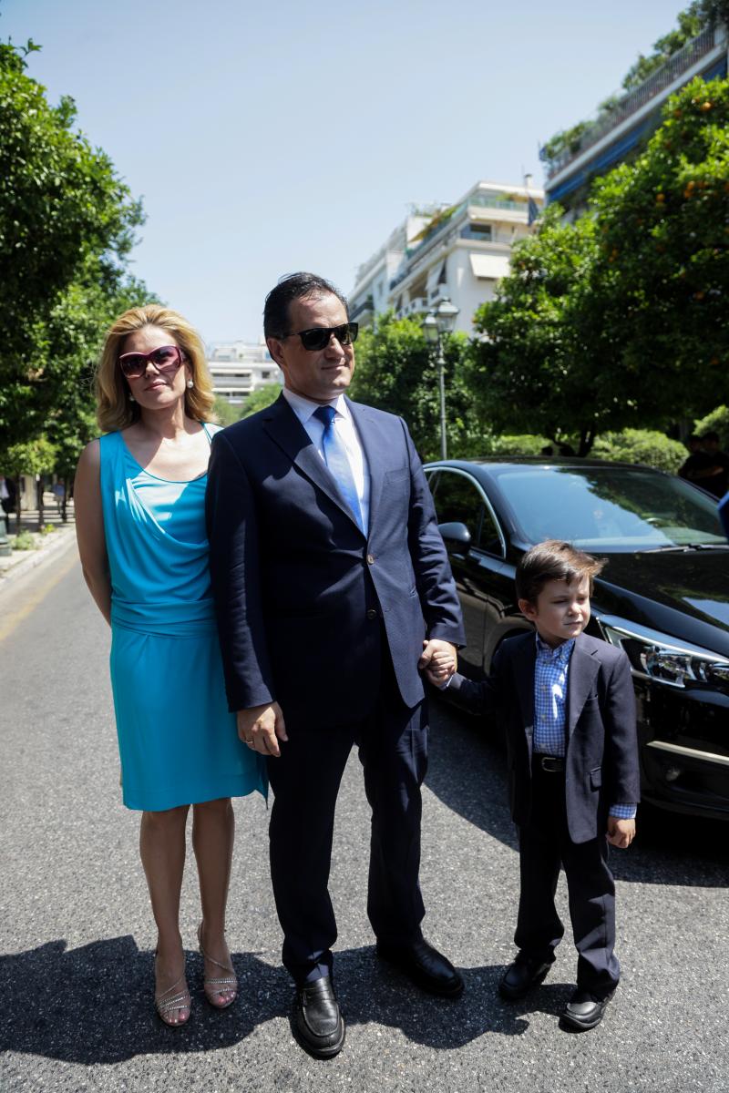 Ο νέος υπουργός Ανάπτυξης και Επενδύσεων Αδωνις Γεωργιάδης με τη συζυγό του Ευγενία Μανωλίδου και τον γιό τους.