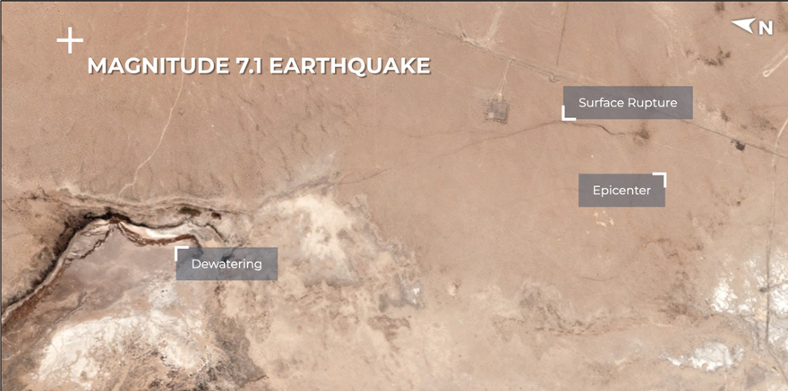 Η ενέργεια που απελευθερώθηκε από τον μεγάλο σεισμό των 7,1 στην Καλιφόρνια ήταν τεράστια. Ήταν τόσο μεγάλη η οργή του Εγκέλαδου που η γη άνοιξε στα δυο σε ένα μεγάλο ρήγμα, το οποίο είναι ορατό πλέον από το διάστημα.