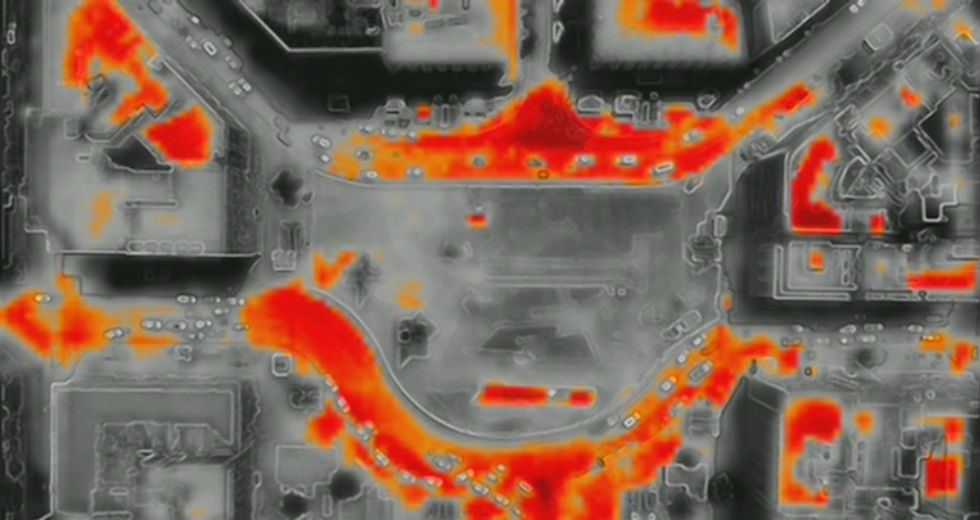 Όπως αναφέρει η Εφημερίδα των Συντακτών, το θερμικό φορτίο στην Πλατεία Συντάγματος και την Πλατεία Ομονοίας καταγράφει η εναέρια λήψη με χρήση θερμικής κάμερας.