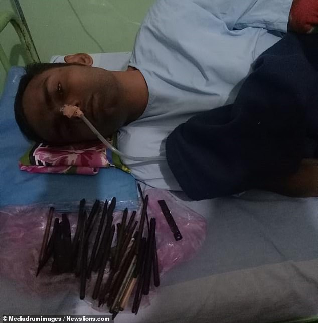 Εκεί οι γιατροί μόλις τον εξέτασαν έμειναν με το στόμα ανοιχτό. Κάτι υπήρχε μέσα στο στομάχι του και οι ακτινογραφίες το επιβεβαίωσαν. Υπήρχαν 33 αντικείμενα πολλά από αυτά αιχμηρά τα οποία είχε καταπιεί. Είχε καταπιεί ξυράφια, μαχαίρια, κατσαβίδια, πρόκες, και ότι άλλο μπορεί να φανταστεί ο ανθρώπινος νους. Οι γιατροί τον έβαλαν αμέσως στο χειρουργείο και ύστερα από μια επιτυχημένη επέμβαση του τα αφαίρεσαν.