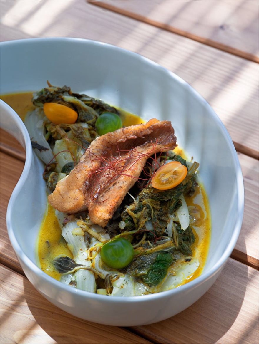 Μεταξύ άλλων πιάτων, έχουν ξεχωρίσει το φρικασέ με ψάρι της ημέρας, ο μπακαλιάρος bianco με ανάλαφρη σάλτσα σκόρδου και το γιουβετσάκι θαλασσινών με ψητή ντομάτα και μοσχάτο Λήμνου. Ιδιαίτερη αίσθηση προκαλούν το ντολμαδάκι θαλασσινών με σάλτσα σαφράν, αλλά και ceviche, ριζότο και ζυμαρικά. Έχουν προβλεφθεί και 5 πιάτα για meat lovers, καθώς και μια μεγάλη λίστα με καλοφτιαγμένα snacks, από ντάκο και Ceasar’s, μέχρι ταμπουλέ και μίνι burgers, που καλύπτουν και τις ώρες της παραλίας! Μεγάλο hit στα γλυκά, το cheesecake Βianco με αμυγδαλωτό Τήνου. Το εστιατόριο λειτουργεί από τις 12 πμ. έως τις 11.30 μμ.