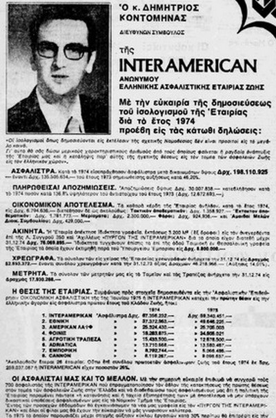 Το 1974 δεν έγινε μόνο η Μεταπολίτευση. Ήταν και η χρονιά της ραγδαίας ανάπτυξης της Interamerican. Είχε ιδρυθεί το 1969 από τον Δημήτρη Κοντομηνά και τον Αλέξανδρο Ταμπουρά η ασφαλιστική εταιρεία που με το όνομά της έδινε την εντύπωση, σε πολλούς, ότι ήταν «Interamerican», δηλαδή ένας αμερικανικός κολοσσός κι όχι μια μικρή ελληνική ασφαλιστική εταιρεία η οποία μεγάλωσε, έγινε Α.Ε το 1971 κι ο νέος από τα Σεπόλια έζησε το δικό του όνειρο, όπως πολλά χρόνια αργότερα ο Γιάννης Αντετοκούμπο.