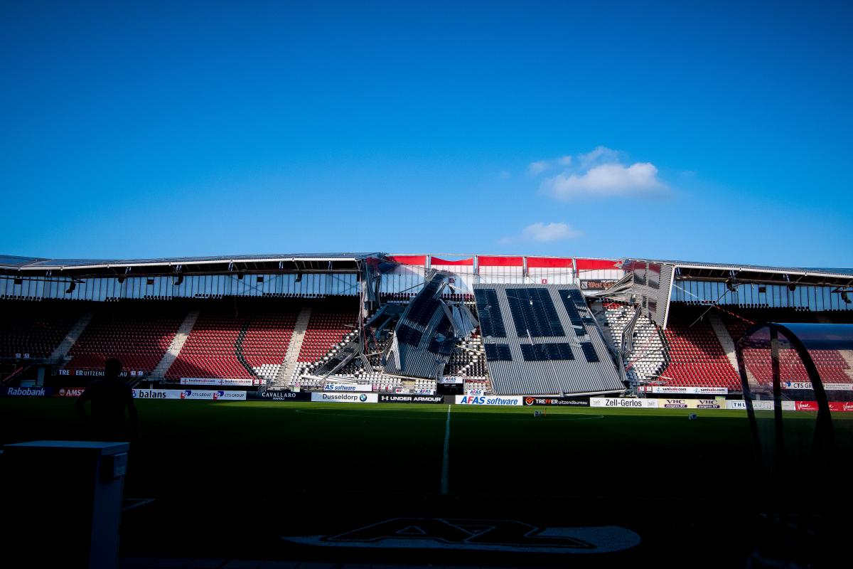 Οι ισχυροί άνεμοι προκάλεσαν χθες Σάββατο την κατάρρευση τμήματος από το στέγαστρο του γηπέδου της ολλανδικής ποδοσφαιρικής ομάδας AZ Άλκμααρ, χωρίς να υπάρξουν θύματα, καθώς εκείνη την ώρα δεν υπήρχε κόσμος στις κερκίδες.