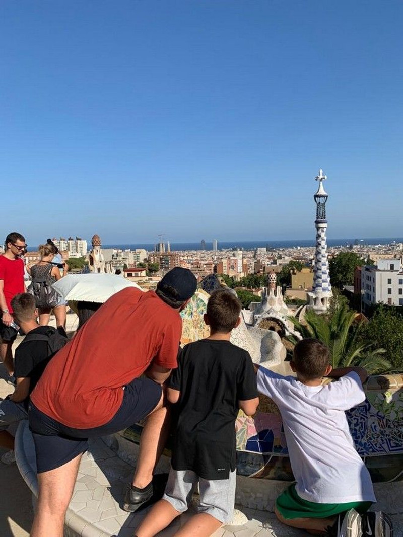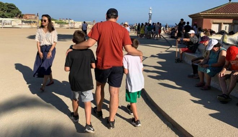 Στις φωτογραφίες ο Αλέξης Τσίπρας βρίσκεται με τους δυο γιούς του στο Παρκ Γκουέλ στη Βαρκελώνη και θαυμάζουν τα αρχιτεκτονήματα του Αντόνι Γκαουντί.
