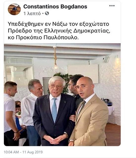 Χαμός στο Twitter με ανορθόγραφη ανάρτηση του Κ. Μπογδάνου, αλλά κυρίως με όσα αλαζονικά απάντησε ο βουλευτής της Ν.Δ. Όλα ξεκίνησαν όταν έγραψε, στη συνηθισμένη γλώσσα παρουσιαστή της πρώτης πρώτης ΥΕΝΕΔ, που χρησιμοποιεί και στη Βουλή: “Υπεδέχθημεν εν Νάξω τον εξοχώτατο Πρόεδρο της Ελληνικής Δημοκρατίας κο Προκόπιο Παυλόπουλο”…