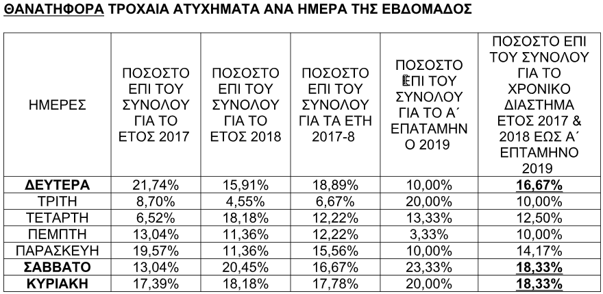 -Μεγαλύτερη παρουσία της Αστυνομίας, ειδικά τα Σαββατοκύριακα (Δευτέρες και Σαββατοκύριακα σημειώνονται τα περισσότερα τροχαία).