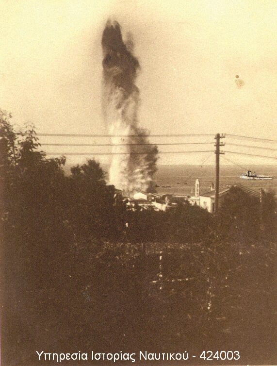 »Στη συνέχεια, το υποβρύχιο απομακρύνθηκε χωρίς να καταστεί γνωστή η ταυτότητά του. Από την έρευνα που διενεργήθηκε στη συνέχεια από πραγματογνώμονες αξιωματικούς του ελληνικού Βασιλικού Ναυτικού, επί των θραυσμάτων των τορπιλών που είχαν εκραγεί στην προκυμαία, διεπιστώθη αμέσως ότι επρόκειτο για ιταλικές τορπίλες.