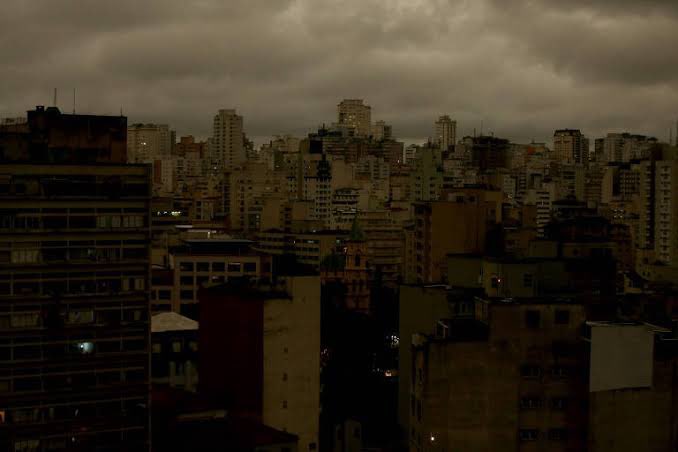 Δεν υπάρχουν φώτα, όμως ο νυκτερινός ουρανός είναι μισοφωτισμένος, διότι ο Αμαζόνιος φλέγεται.