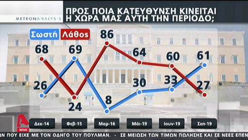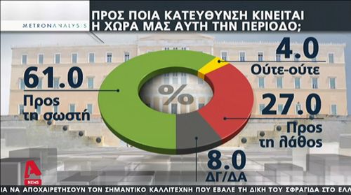 Το 61% απαντά πως τα πράγματα κινούνται στη σωστή κατεύθυνση, ενώ το 27% προς τη λάθος κατεύθυνσή. Μάλιστα, για πρώτη φορά μετά από πολύ καιρό, οι αισιόδοξοι είναι περισσότεροι από τους… απαισιόδοξους.
