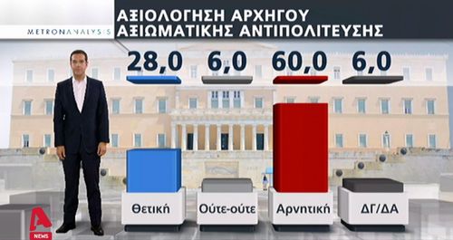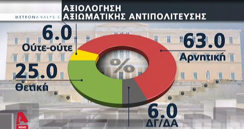 Επίσης, το 63% κρίνει αρνητικά την αντιπολιτευτική τακτική του ΣΥΡΙΖΑ, την ώρα που μόλις το 25% την αξιολογεί θετικά.