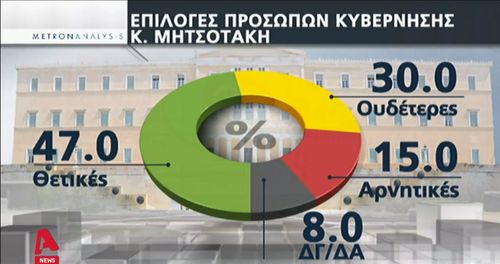 Το 47% κρίνει θετικά τις επιλογές των προσώπων στην κυβέρνηση από τον Κυριάκο Μητσοτάκη, ενώ το 15% αρνητικά. Ουδέτερη άποψη έχει το 30%.