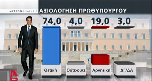 Το 74% επίσης κρίνει θετικά τη μέχρι στιγμής παρουσία του πρωθυπουργού Κυριάκου Μητσοτάκη. Από την άλλη, το 28% κρίνει θετικά την παρουσία του προέδρου του ΣΥΡΙΖΑ Αλέξη Τσίπρα.