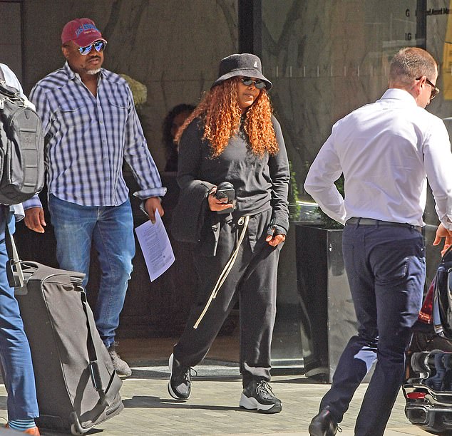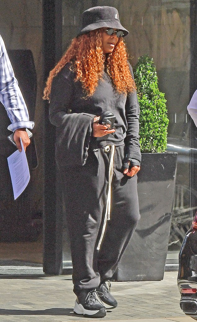Με νάρθηκα καρπού εμφανίστηκε η αδερφή του Μάικλ Τζάκσον, Τζάνετ, όταν έβγαινε από ένα γραφείο στο Μέιφερ του Λονδίνου, το απόγευμα της Πέμπτης.
