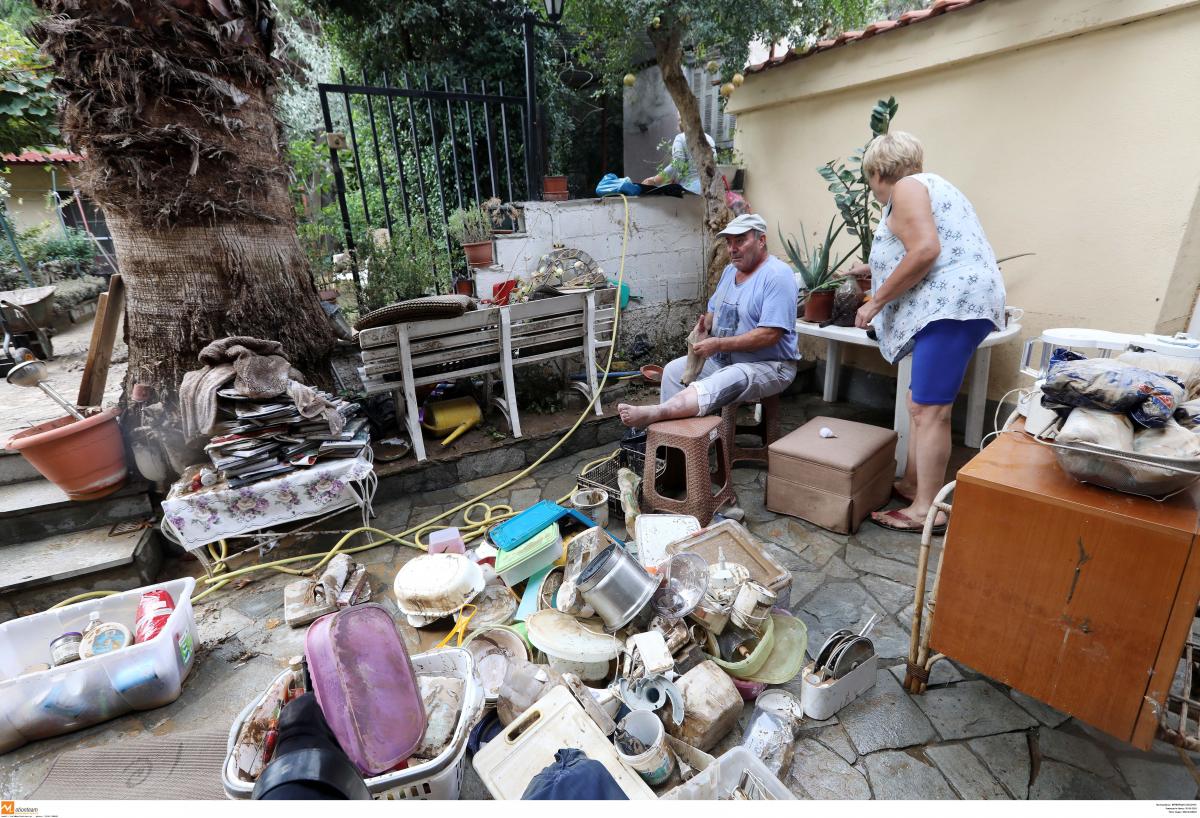 Το πρωί, οι κάτοικοι με σκούπες και σφουγγαρίστρες ανά χείρας, προσπάθησαν να καθαρίσουν και να σώσουν ό,τι μπορούσαν από τις περιουσίες τους.