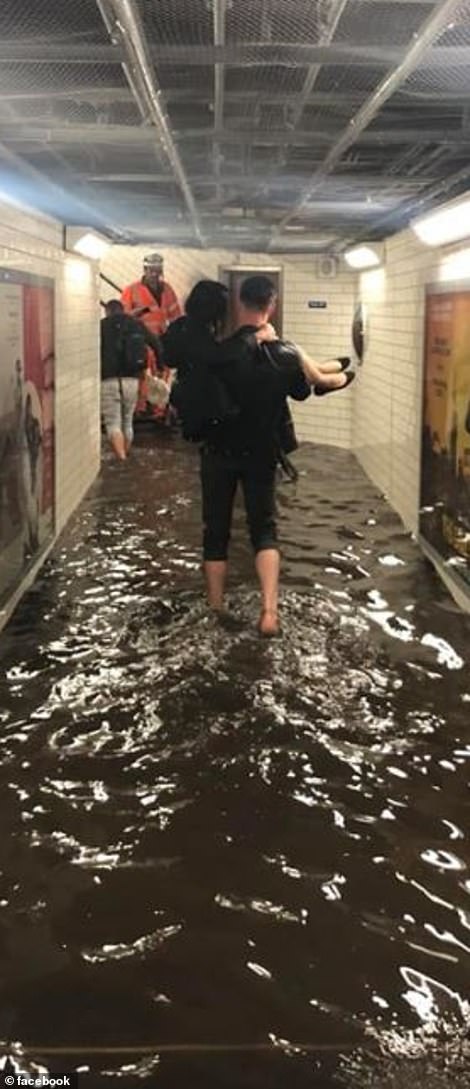 Το νερό στον σταθμό της Λίβερπουλ Στριτ έτρεχε από την οροφή των εγκαταστάσεων, με τα δρομολόγια προς Έσεξ και Ιστ Ανγκλία να ακυρώνονται. Οι επιβάτες του μετρό φαίνονται σε φωτογραφίες να «κολυμπούν» κυριολεκτικά μεταξύ των πλημμυρισμένων χώρων του σταθμού Μουργκέιτ.