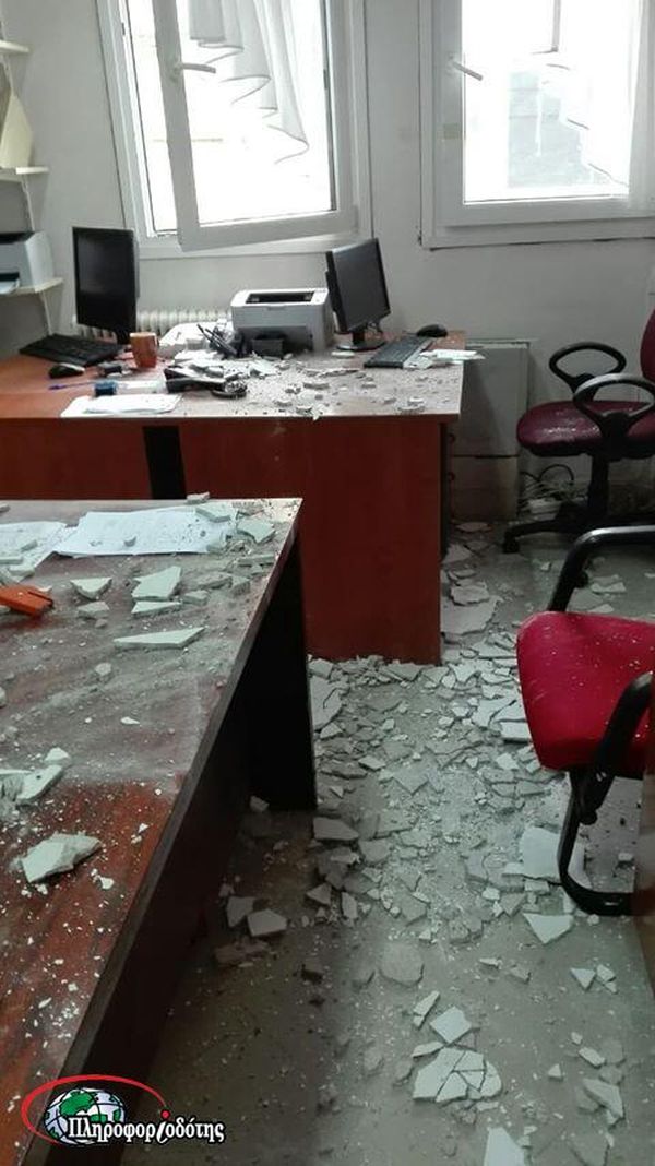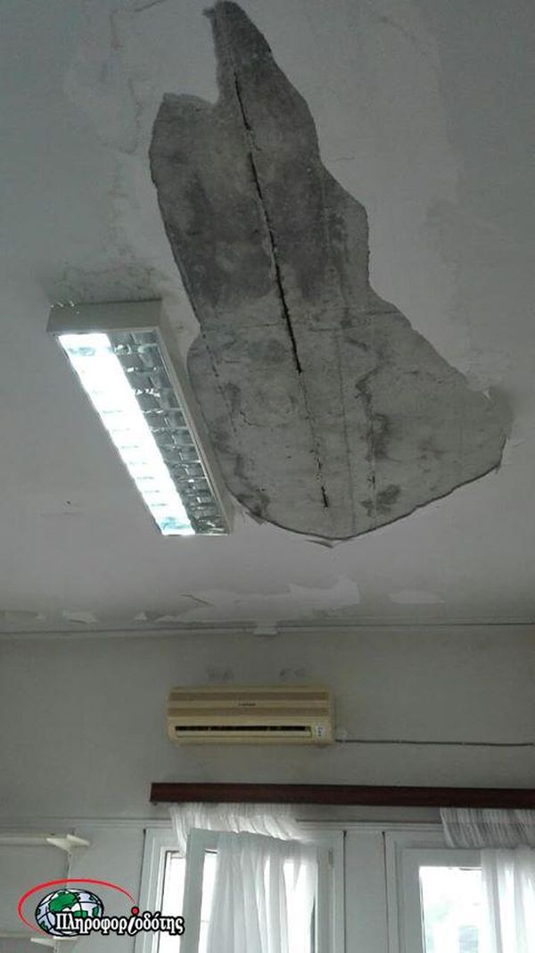 Εντελώς ξαφνικά, κομμάτια από το ταβάνι έπεσαν πάνω τους, ευτυχώς όμως δεν υπήρξε σοβαρός τραυματισμός πέραν από μία γιατρό που χτύπησε ελαφριά στο πόδι.