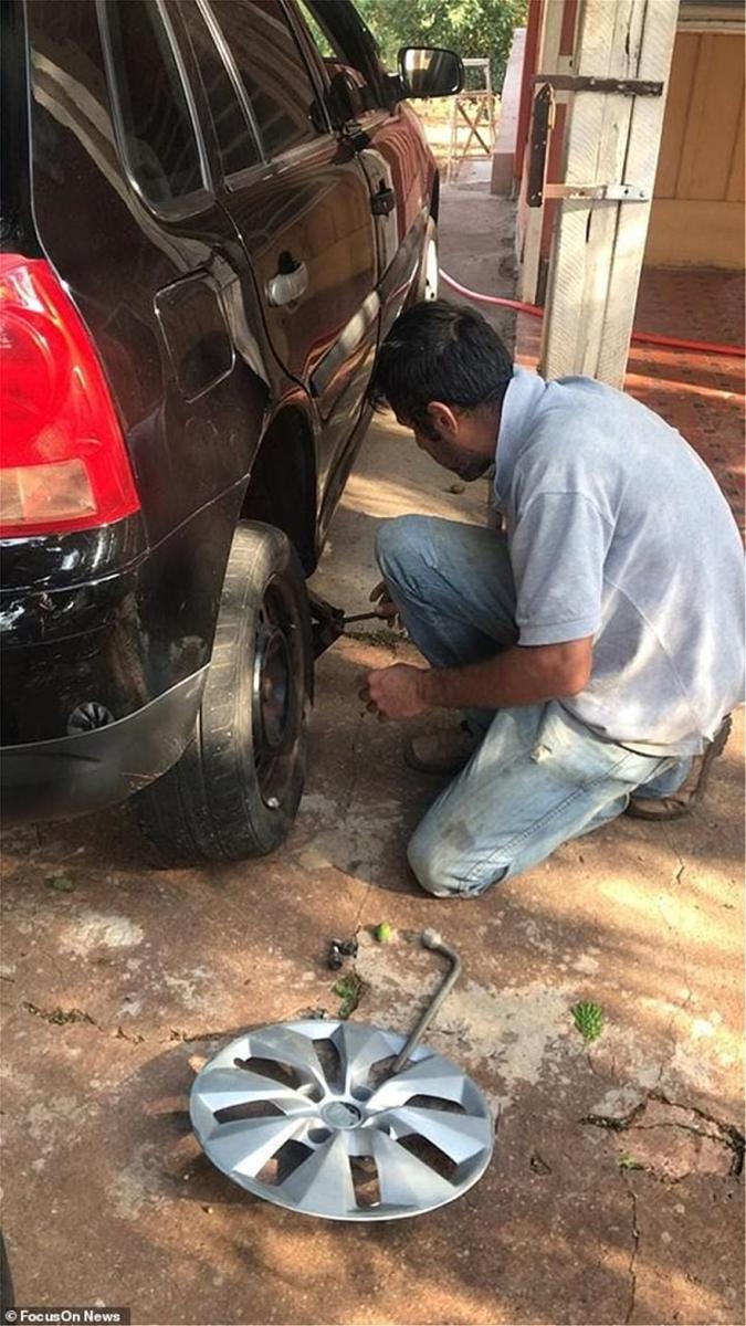 Όταν η κοπέλα επέστρεψε και είδε το λάστιχο της, εκείνος εμφανίσθηκε σαν ευγενικός κύριος και προσφέρθηκε να τη βοηθήσει να το αλλάξει.