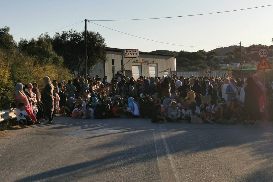 Κρατώντας χαρτόνια πάνω στα οποία γράφει «Scorched hearts» («καμένες καρδιές») περίπου 200 γυναίκες αιτούντες άσυλο πραγματοποιούν αυτή τη στιγμή καθιστική διαμαρτυρία στο δρόμο, 300 μέτρα από την είσοδο του καταυλισμού στο Κέντρο Υποδοχής και Ταυτοποίησης της Μόριας έχοντας κλείσει την πρόσβαση σε αυτό,