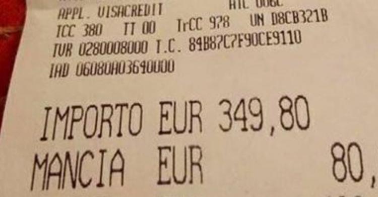 Οι Ιάπωνες τουρίστες είδαν μετά το γεύμα τους στο ιστορικό Antico Caffe’ di Marte να τους έρχεται ένας λογαριασμός 429,80 ευρώ. Όταν τον εξέτασαν καλά διαπίστωσαν πως πέρα από τις «αλμυρές» τιμές του καταστήματος, είχε προστεθεί στην τελική τιμή και φιλοδώρημα, ύψους …80 ευρώ!