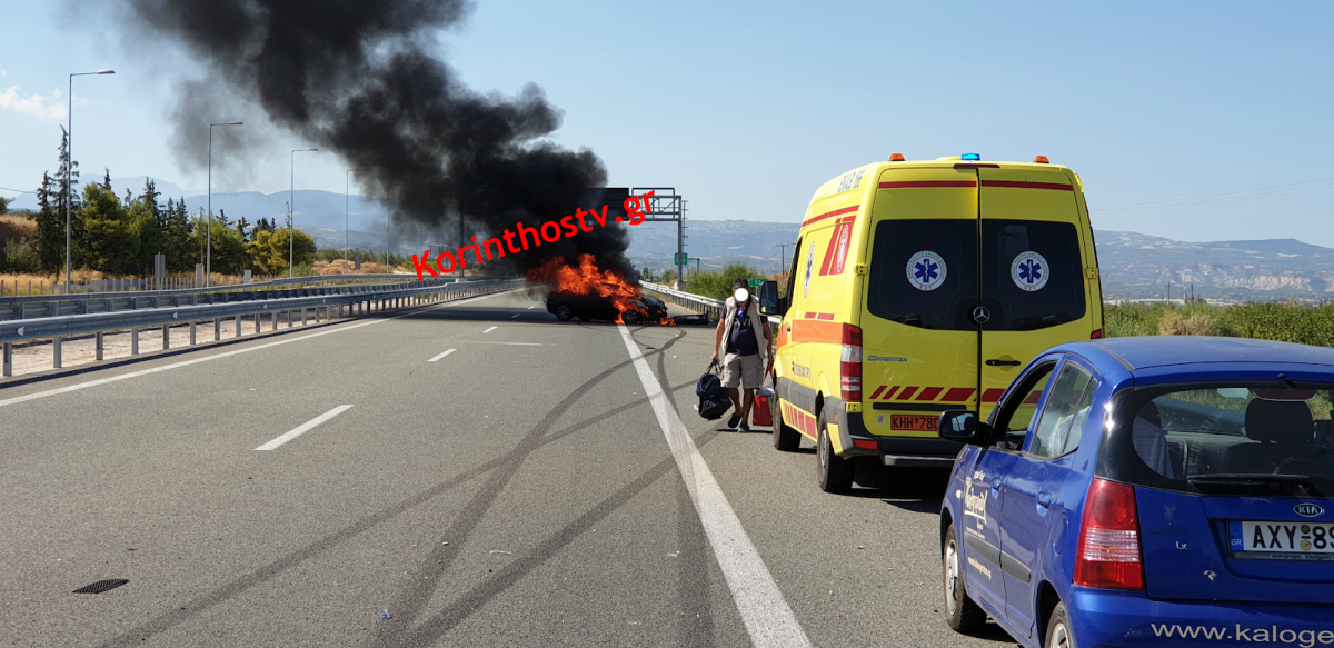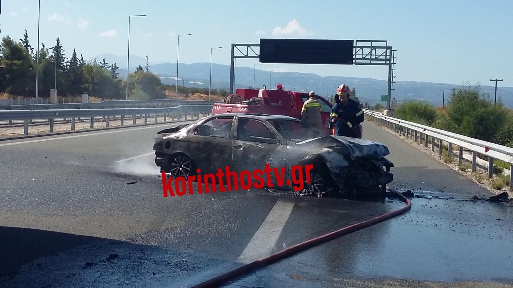 Σύμφωνα με πληροφορίες, δυο Ι.Χ συγκρούστηκαν με αποτέλεσμα το ένα από τα δύο αυτοκίνητα να τυλιχτεί στις φλόγες.