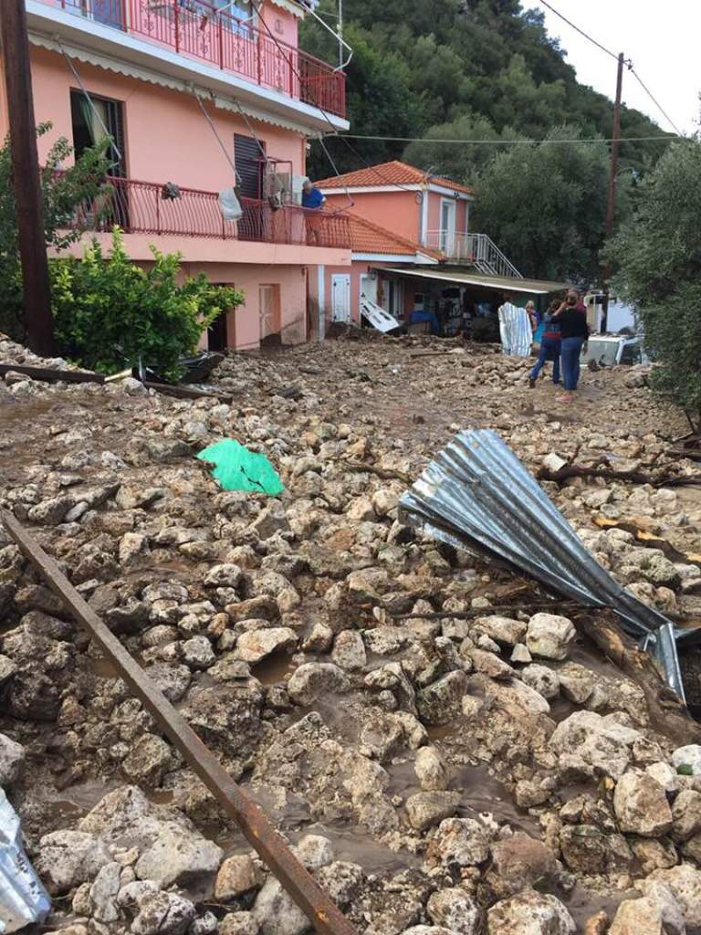Μεγάλες ήταν οι καταστροφές που προκάλεσε στην Κεφαλονιά η ισχυρή βροχόπτωση με τα νερά να παρασέρνουν τεράστια κομμάτια βράχων από τα βουνά.