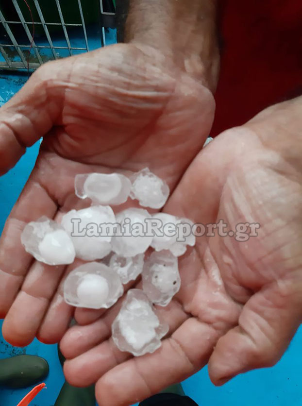 Όπως αναφέρει το lamiareport.gr, με τον «καιρό» να έρχεται από τη θάλασσα και τον βόρειο Ευβοϊκό, γρήγορα ένα μαύρο σύννεφο τύλιξε την περιοχή και ακολούθησε ένα καταιγιστικό 10λεπτο με βροχή και χαλάζι στο μέγεθος που βλέπετε στις φωτογραφίες.