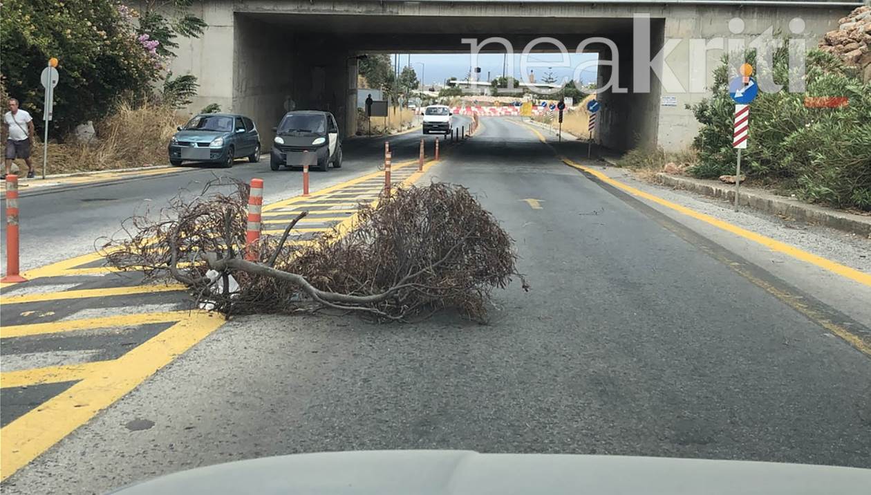 Μάλιστα οδηγός, σύμφωνα με πληροφορίες, διακινδύνευσε και κατέβηκε από το όχημά του, ώστε να πάει να μετακινήσει το κλαδί που βρισκόταν στη μέση του δρόμου.