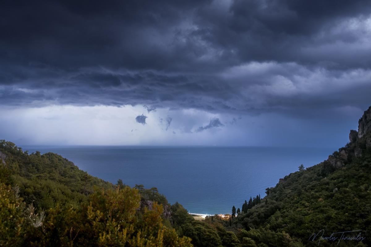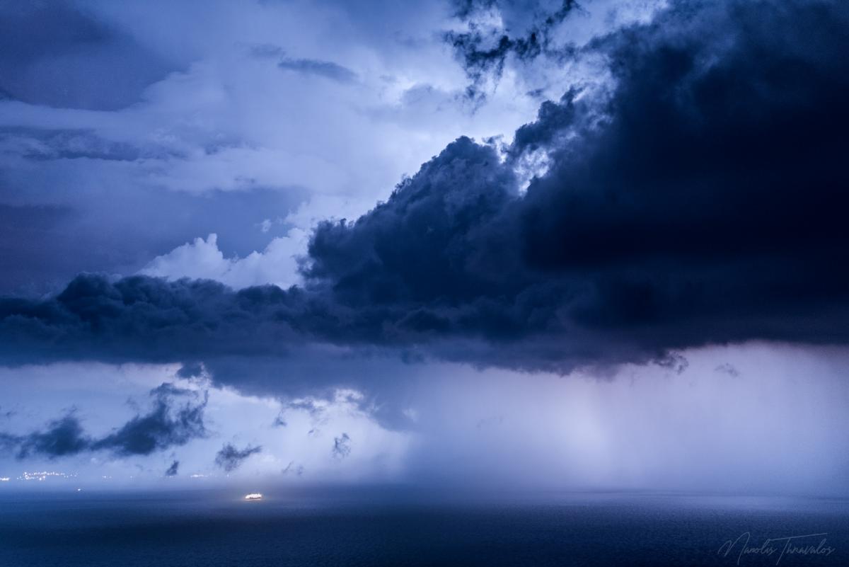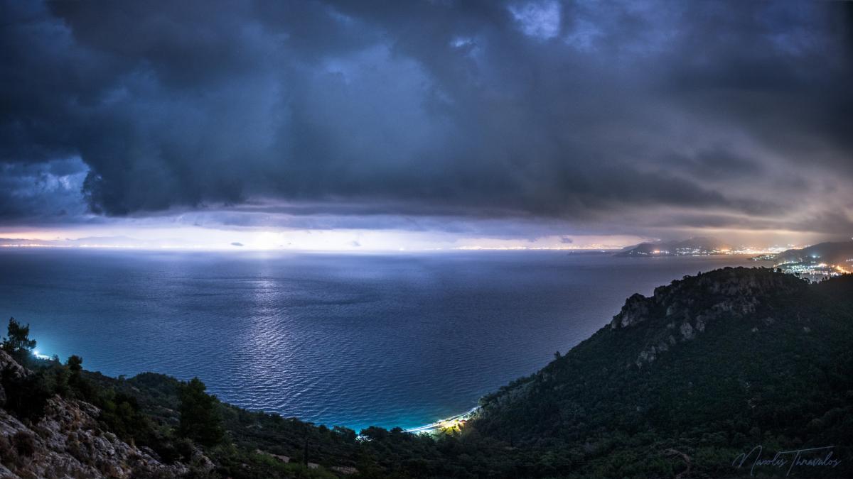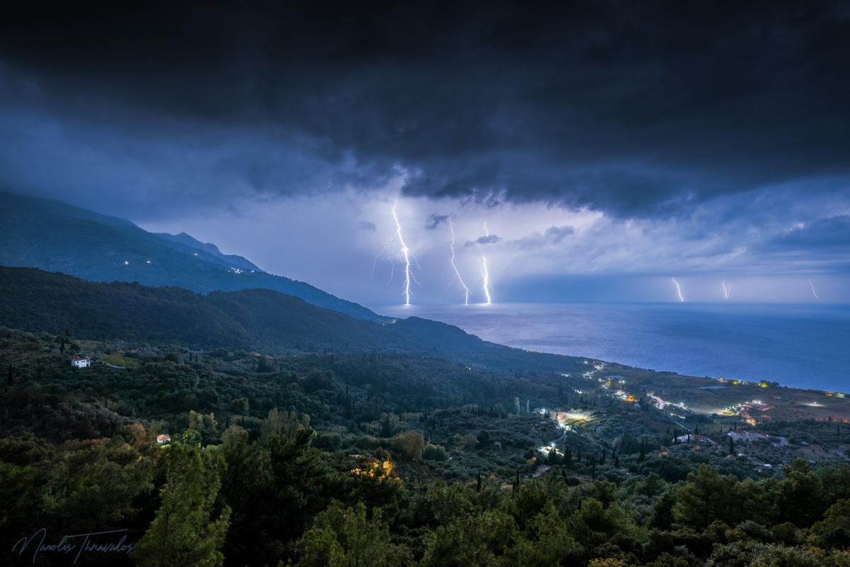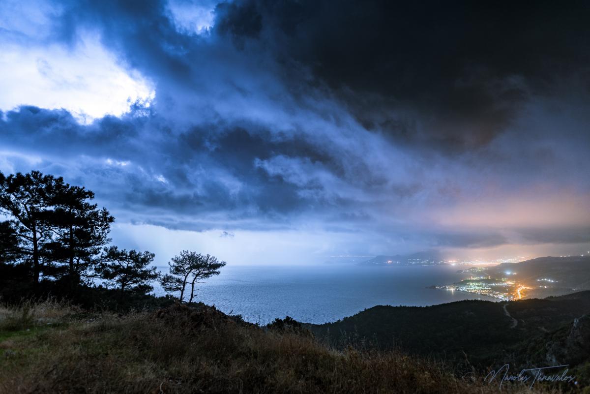 Ιδιαίτερη νύχτα για την Σάμο αυτή της Κυριακής προς Δευτέρα, με ασταμάτητες καταιγίδες που έκαναν τη νύχτα μέρα για ώρες κατά μήκος της βόρειας ακτής του νησιού.