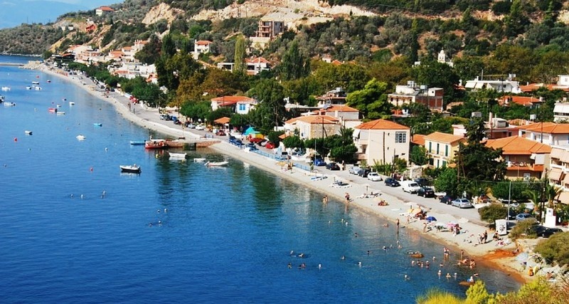 Η παραλία Θερμά Λουτρά βρίσκεται στα 600 περίπου μέτρα αριστερά.