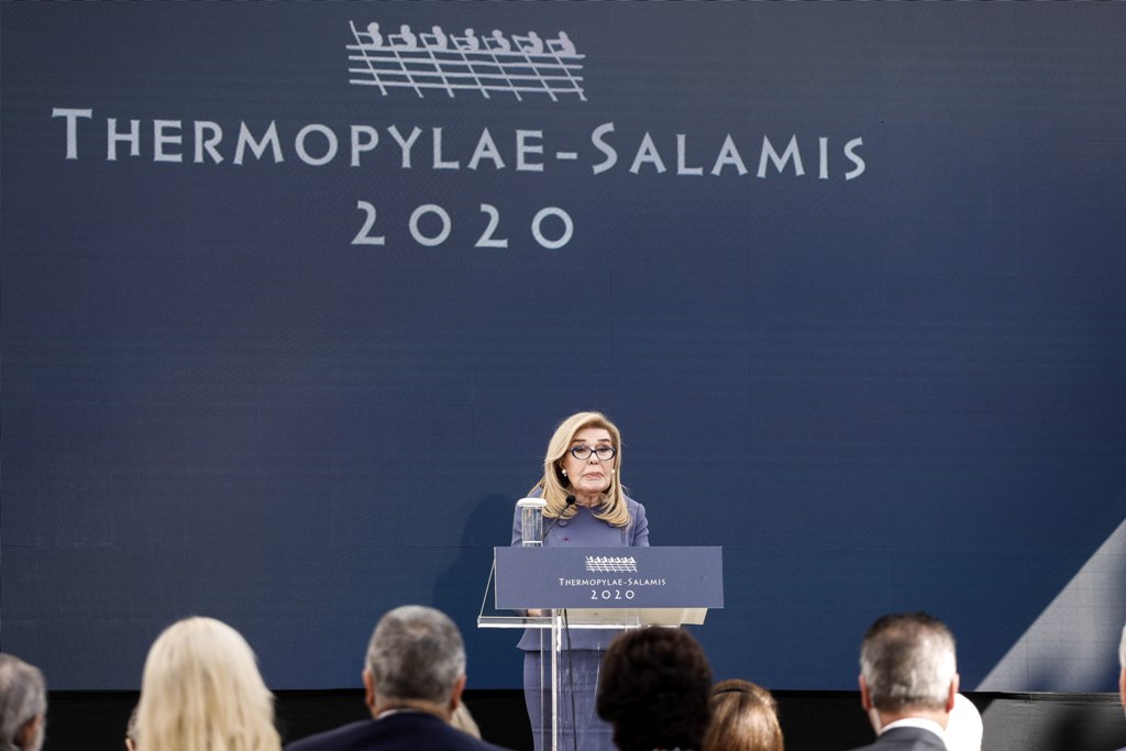 Η Υπουργός Πολιτισμού κυρία Λίνα Μενδώνη τόνισε ότι το Υπουργείο Πολιτισμού με την κατεύθυνση του Πρωθυπουργού ετοιμάζεται για τον εορτασμό της σημαντικής αυτής επετείου ενώ μίλησε αναλυτικά για τη σημασία της Ναυμαχίας της Σαλαμίνας αλλά και της Μάχης των Θερμοπυλών: «Αφού, λοιπόν, οι Θερμοπύλες εκπλήρωσαν την ηθική προϋπόθεση στήνοντας το βωμό της θυσίας που απαιτούσε η θεμελίωση της «αρετής», η Σαλαμίνα έγινε ο τόπος όπου η αρετή αυτή μετουσιώθηκε, λαμβάνοντας την έτερη, συμπληρωματική της υπόσταση της «ελευθερίας». Ενσαρκώνοντας την αρετή, οι Έλληνες πέτυχαν το φαινομενικά ακατόρθωτο, το θαύμα: Υπερέβησαν τα τυπικά ανθρώπινα μέτρα, κατανίκησαν τη λογική των αριθμών και δημιούργησαν την κρίσιμη εκείνη καμπή στον αγώνα, που θα τους επέτρεπε αμέσως μετά στις Πλαταιές με ανανεωμένη πίστη και ελπίδα να διεκδικήσουν ισότιμα, να ανακτήσουν και να παγιώσουν την ελευθερία τους. Εδώ και 2500 χρόνια, ο Δυτικός κόσμος και ο Ελληνισμός αναγνωρίζουν στο θαύμα της Σαλαμίνας ένα γεγονός που συνέβαλε καθοριστικά στη διάσωση και εμπέδωση του αναδυόμενου πολιτισμού τους, λειτουργώντας καταλυτικά για τη φιλοσοφική, την πολιτική και την καλλιτεχνική έκρηξη που ακολούθησε υπό τη φυσική και πνευματική ηγεσία της αθηναϊκής δημοκρατίας. Ο θρίαμβος της Σαλαμίνας αφενός διέσωσε τον Ελληνισμό, αφετέρου κατέστησε αυτά τα πολιτιστικά επιτεύγματα εφικτά».