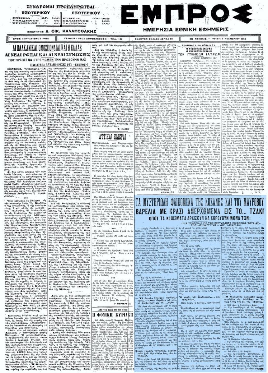 Η είδηση δημοσιεύθηκε στην εφημερίδα «ΕΜΠΡΟΣ», στις 04/11/1924.