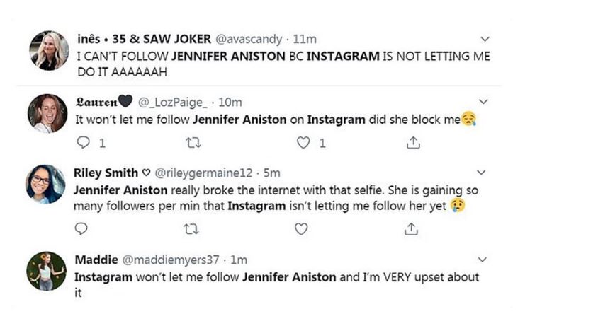 Πολλοί ήταν αυτοί που παραπονέθηκαν καθώς δεν μπορούσαν αν την ακολουθήσουν με τη Τζένιφερ Άνιστον να απαντά σε έναν από αυτούς: «Συγγνώμη, νομίζω ότι το χάλασα!».