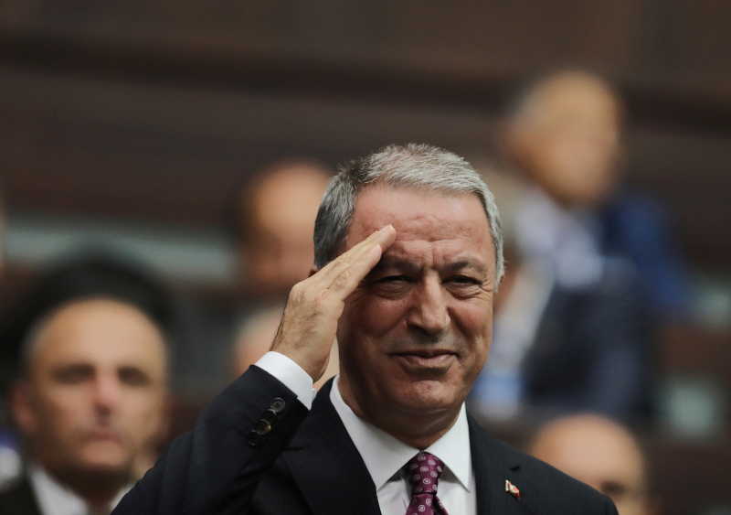 Την περασμένη Τετάρτη, ο υπουργός Αμυνας Χουλουσί Ακάρ μπαίνοντας στην αίθουσα όπου συνεδριάζουν τα μέλη του κόμματος του Ερντογάν, και αυτός, αποφάσισε να χαιρετήσει στρατιωτικά τους συναδέλφους του.