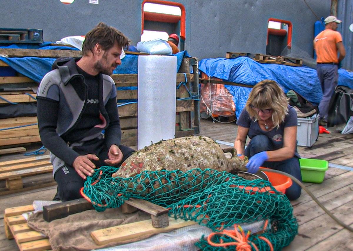«Αρχικά έγινε εντοπισμός εκ νέου του χώρου του ναυαγίου και νέα οριοθέτηση μετά από την τελευταία έρευνα του Σεπτεμβρίου 2017. Ανελκύστηκαν πέντε σάκοι με άμμο, που είχαν αφεθεί στον βυθό από την προηγούμενη ανασκαφική περίοδο, τα προϊόντα των οποίων κοσκινίστηκαν με μεγάλη προσοχή από εξειδικευμένη συντηρήτρια της Εφορείας Εναλίων Αρχαιοτήτων και παρουσία δύο αρχαιολόγων. Κατά τη διαδικασία του διαχωρισμού συλλέχθηκαν οστά, τα οποία πρέπει να αναλυθούν, πυρήνες κατά πάσα πιθανότητα ελιάς, χάλκινα καρφιά από το πλοίο καθώς και ένας μπρούτζινος δακτύλιος άγνωστης προς το παρόν χρήσης», αναφέρει το ΥΠΠΟΑ.