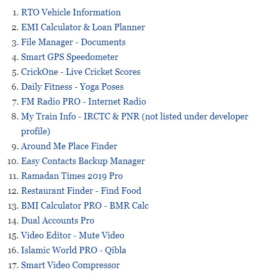 Οι επίμαχες εφαρμογές, οι οποίες είναι ακόμα διαθέσιμες σε ορισμένες χώρες είναι οι εξής: