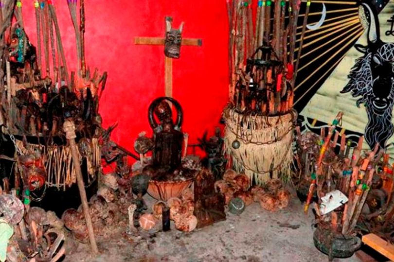 Φωτογραφίες που διένειμε στα μέσα ενημέρωσης η εισαγγελία της πόλης εικονίζουν κρανία στοιβαγμένα γύρω από τον βωμό, πίσω από τον οποίο υψώνεται ένας σταυρός με μια ξύλινη μάσκα με κέρατα.